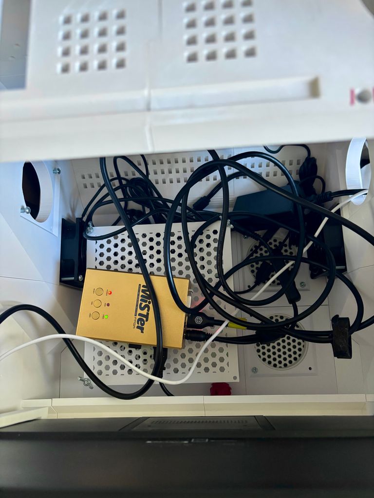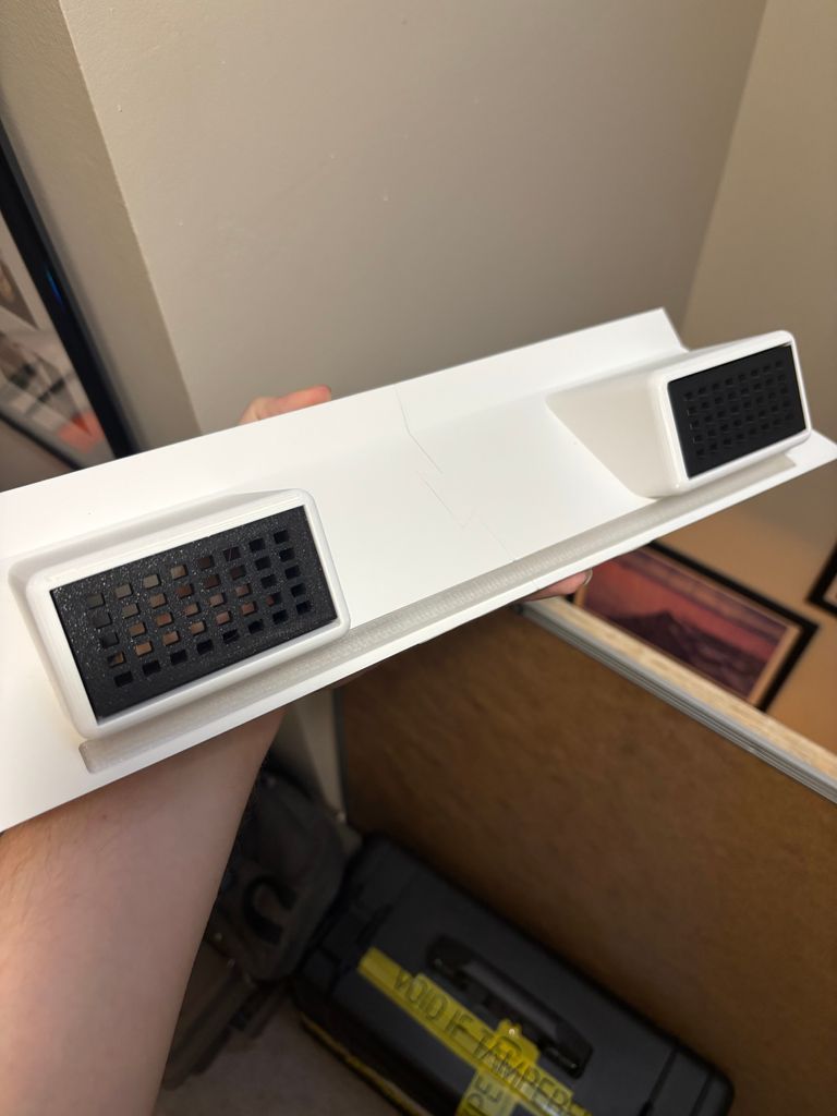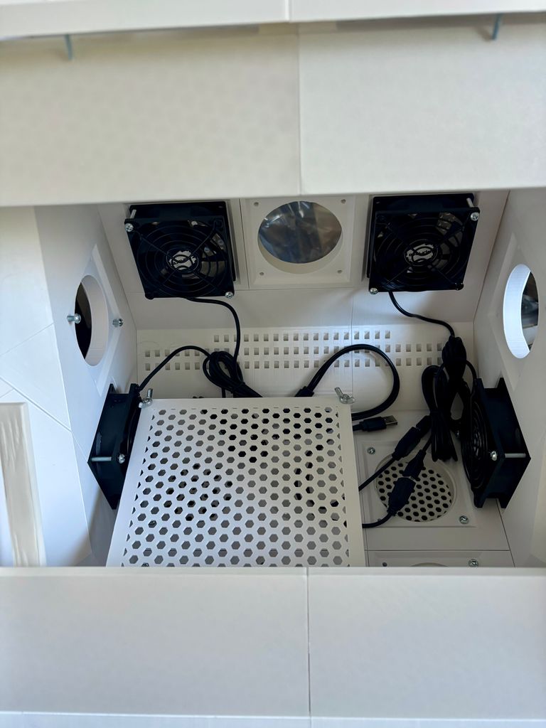 I made use of a very handy parametric grille generation tool that was created by a user of Maker World (Bambu Studio's online portal for posting printable models), to generate various fan port covers for the ports: grilles, solid covers, and indented covers for peripherals. The tool was able to add screw thread holes to the corners of the cover models, and then afterwards in Bambu Studio I added a thin solid layer at the base of those holes. This meant that the port covers could be screwed in from the inside, leaving them unable to be removed easily from the outside.