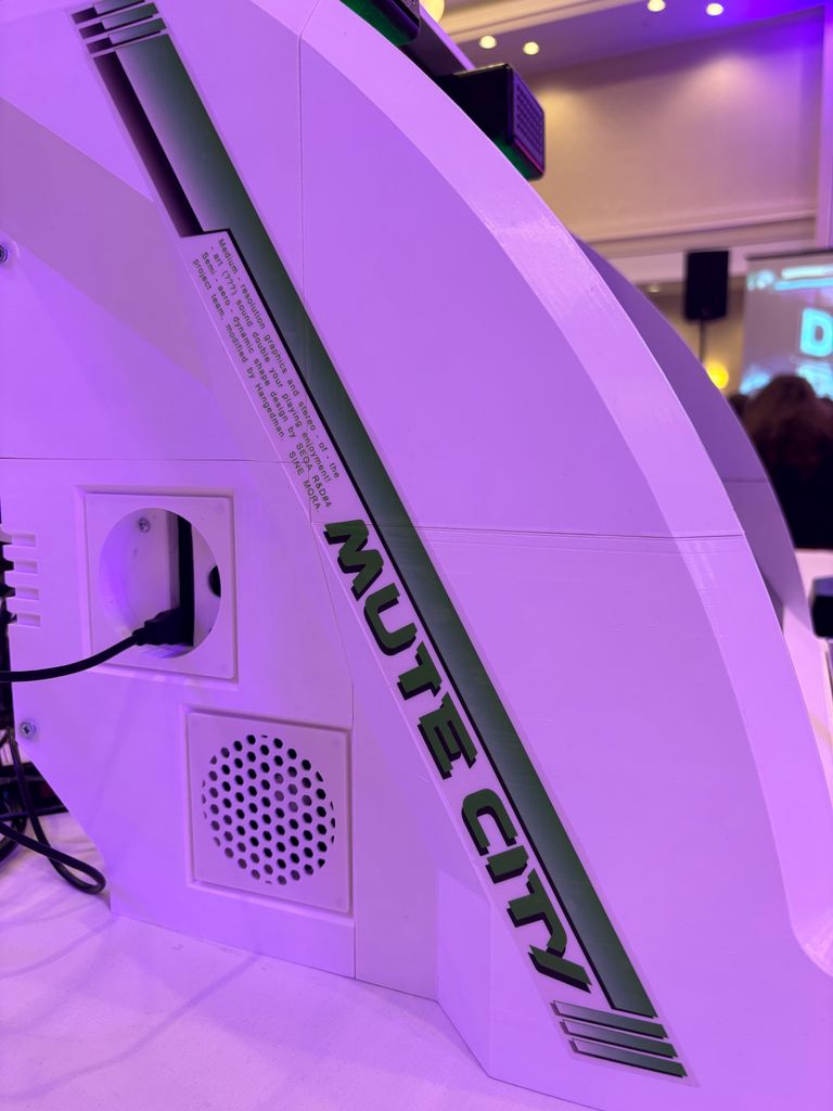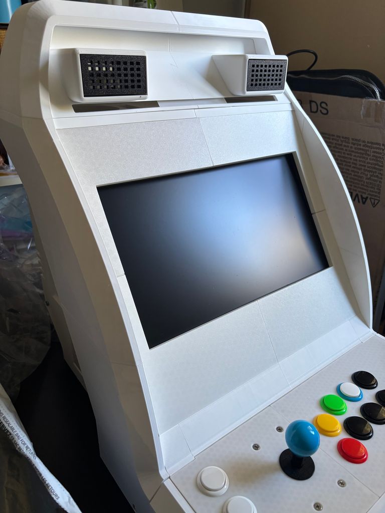 One example of a substantial edit was to export the MNAC topper speaker box as a model I could further edit in Blender, so I could shrink the speaker openings slightly and add a lightbar below them, which was an iconic feature of the original arcade cabinet missing from the MNAC design.