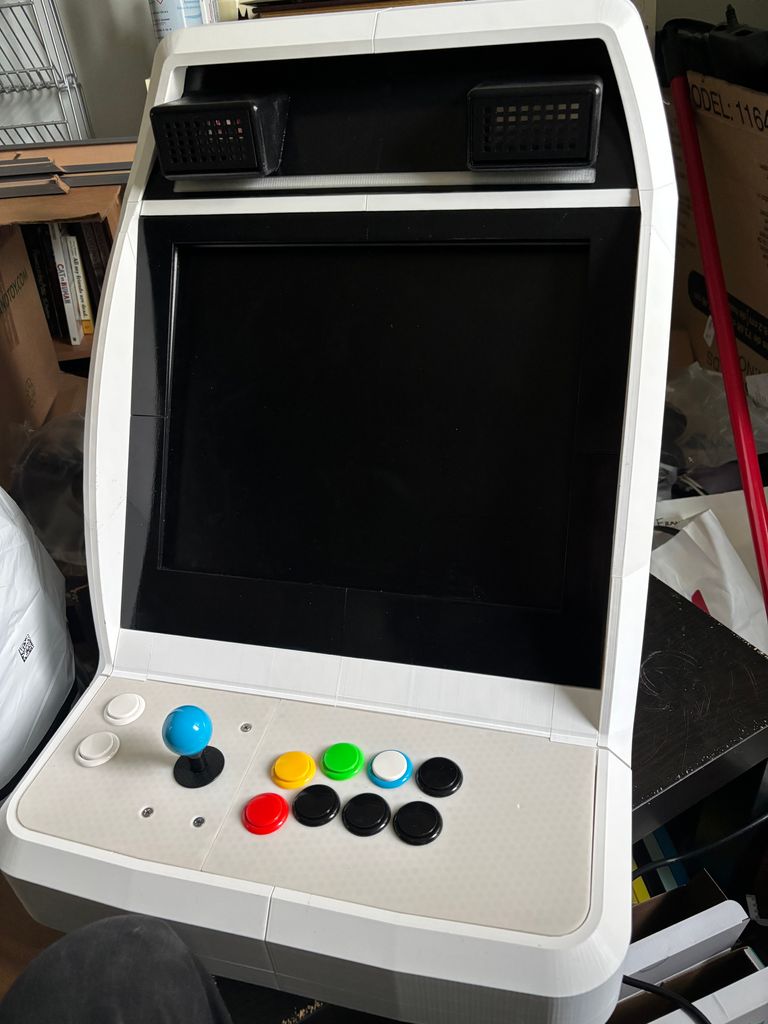 While considering how to go about printing a cabinet, I came across the excellent "Mini New Astro City" free 3D-printable model STL files made by Game-Makers. The MNAC design was very well-made, and importantly, was not pre-separated into many small parts since it was intended to be printed as larger pieces on a larger print bed (300mm³ vs my printer's 256mm³).