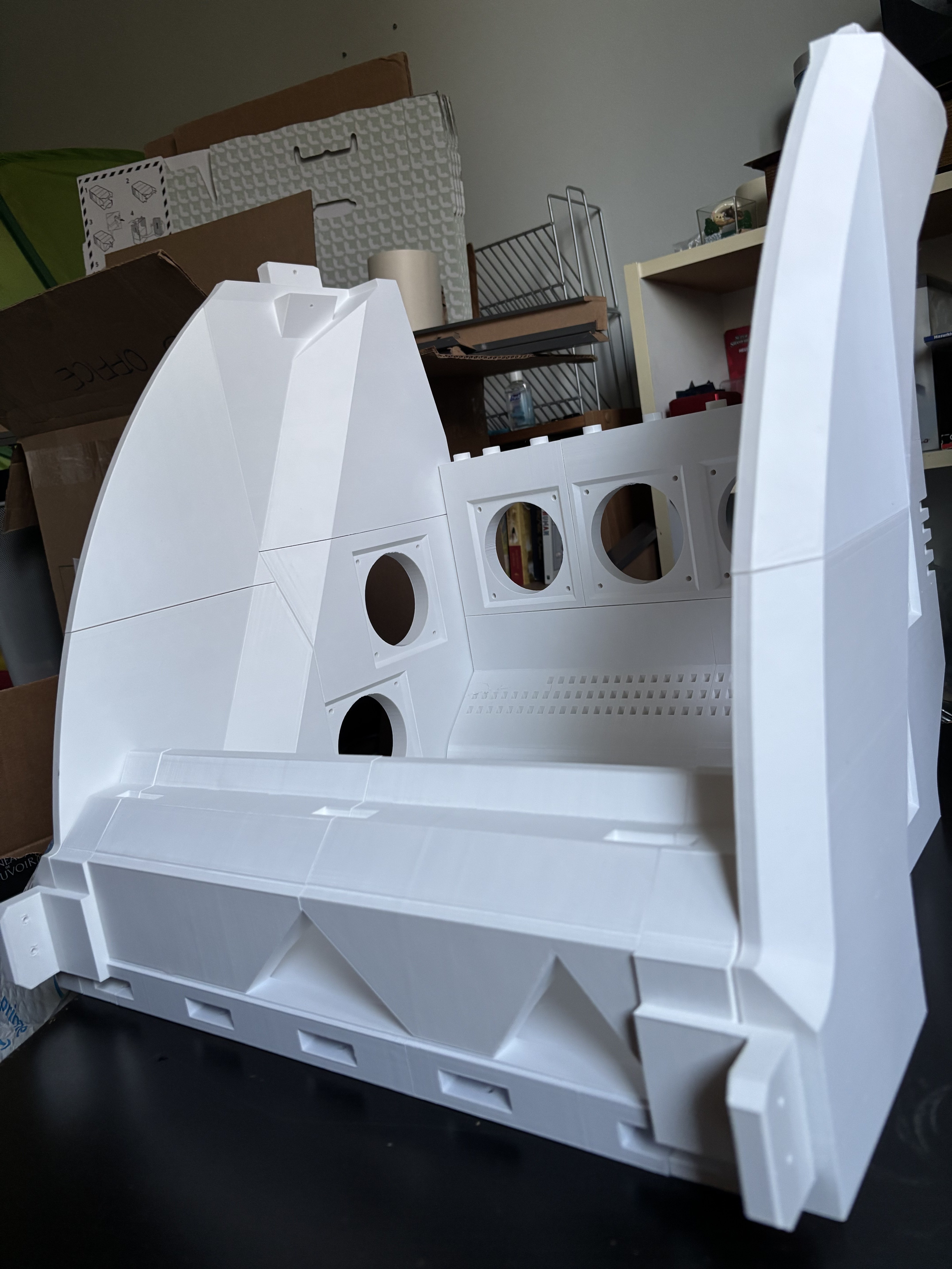 Once the main body was solid, I started printing the various scaled-up additional pieces, and assembled them, making edits to some as I went.