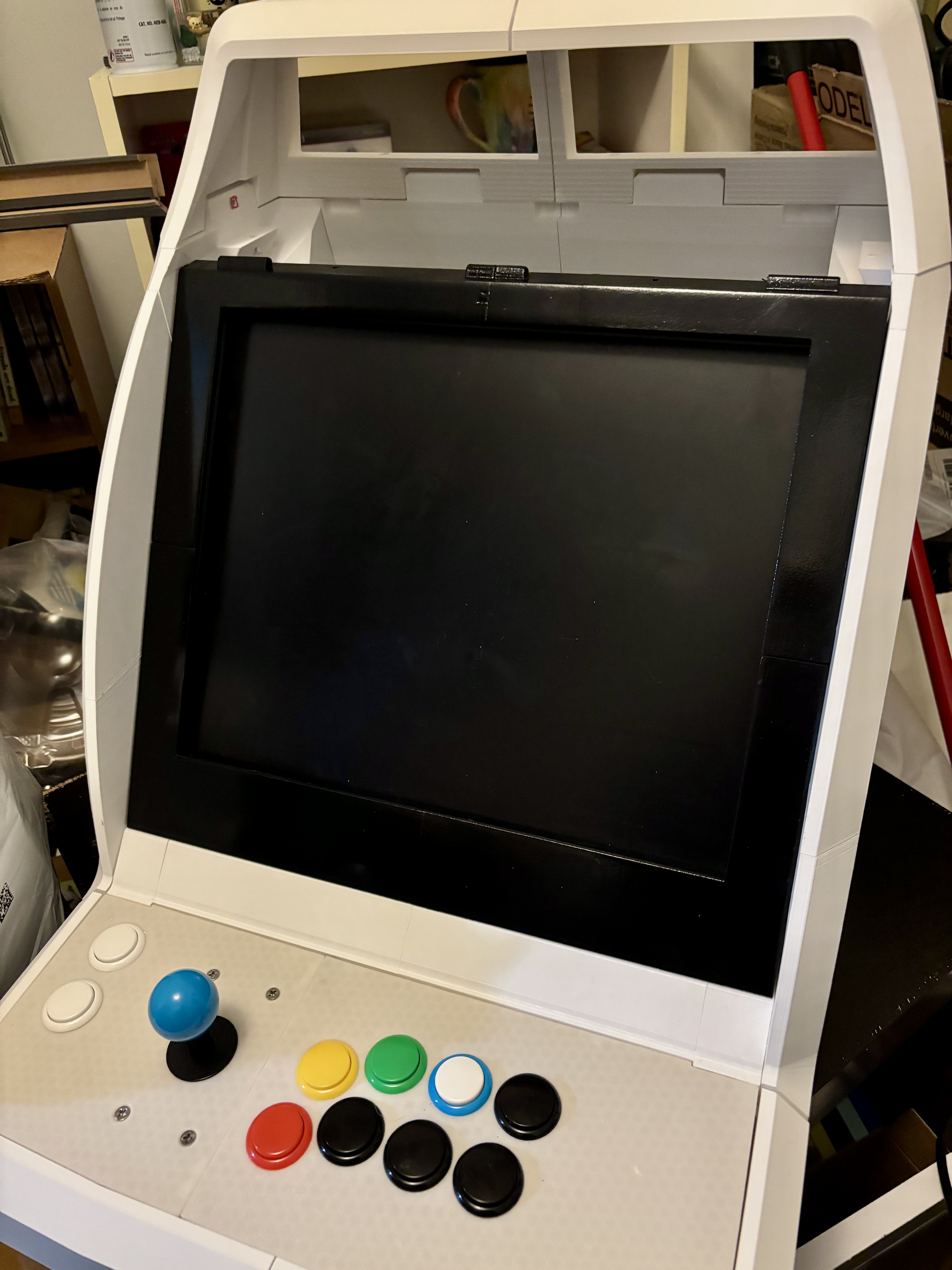 I started out with one premise: tiny tabletop arcade cabinets (like the Astro City Mini) are very neat little pieces of tech, but they are too small to use comfortably, especially for adults. So I wasn't going to build one unless it was scaled properly for sustained use by adults.